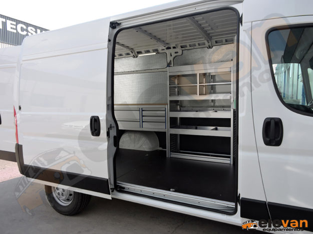 Sin cama para estar de pie en el interior del vehículo. Provisto con tres ventanas, dos con mosquiteras y una con tragaluz.