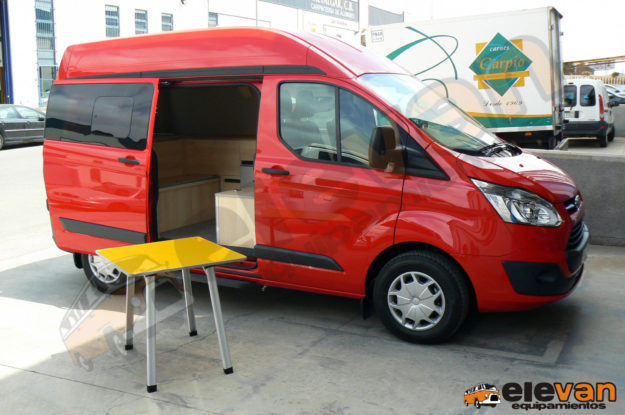 Camper homologada para 4 plazas equipada con una siento cama en parte trasera, techo elevable con cama, bases giratorias en asientos delanteros, batería auxiliar, iluminación leds, instalación de agua con fregadero y ducha exterior, nevera de 50l, wc portátil, toldo…
